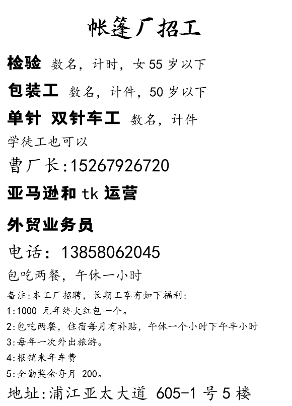 浦江杭浦工贸有限公司 修改了岗位 车间普工 ,快去看看吧。2025-11-16 08:28