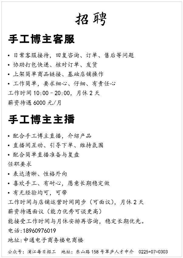 宏枫日用品有限公司 修改了岗位 电商配货,打包 ,快去看看吧。2026-02-24 16:48